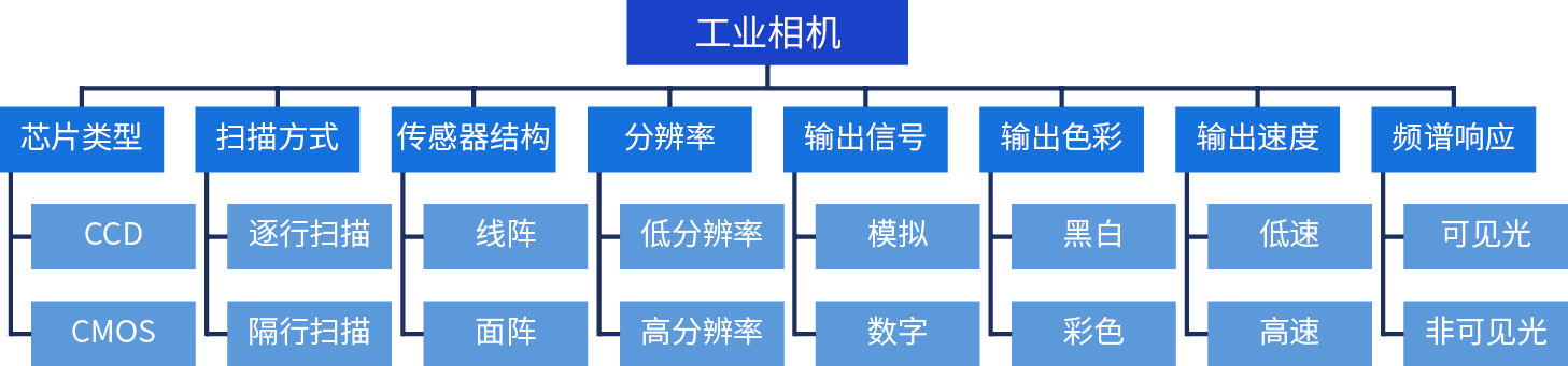藍洋智能科技在機器視覺項目中為企業(yè)精選主流高品質(zhì)工業(yè)相機及鏡頭,為生產(chǎn)流程中的質(zhì)檢環(huán)節(jié)提供強大的硬件支持。工業(yè)相機作為機器視覺的核心部件,其工作原理是通過光電探測器或圖像傳感器將外界光信號轉(zhuǎn)變成可被計算機處理的電信號,實現(xiàn)目標圖像信息的采集。工業(yè)相機按照不同的指標有諸多分類方式,選擇合適的工業(yè)相機是機器視覺系統(tǒng)設計中的重要環(huán)節(jié),不僅直接決定采集圖像的質(zhì)量和速度,同時也與整個系統(tǒng)的運行模式相關。